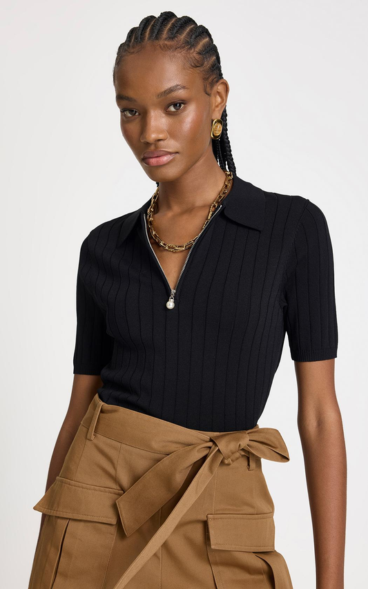 Remera Alexia negra con medio cierre Le Lis Blanc