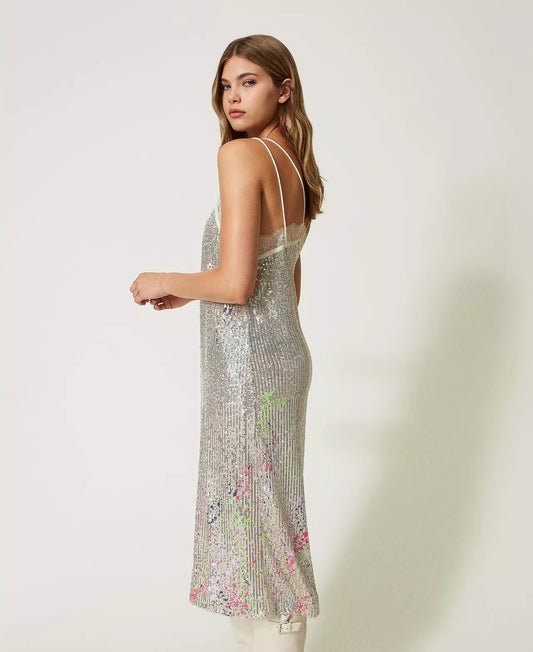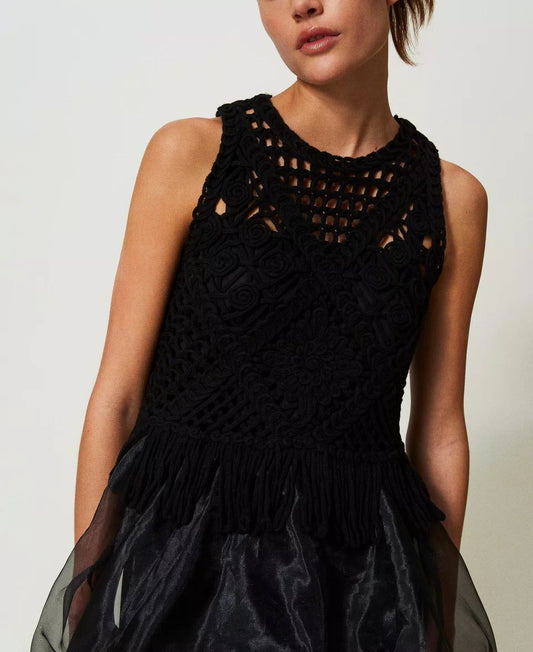 Vestido largo negro tejido con lentejuelas Katy Twinset