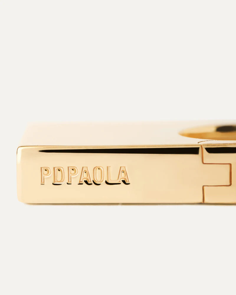 Aros grandes geométricos de plata bañada en oro con forma cuadrada alargada